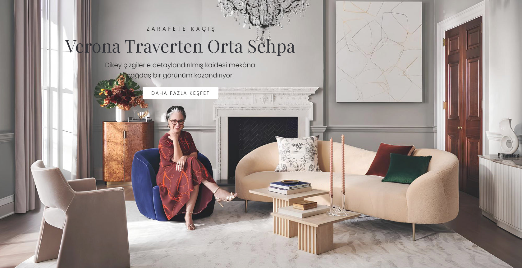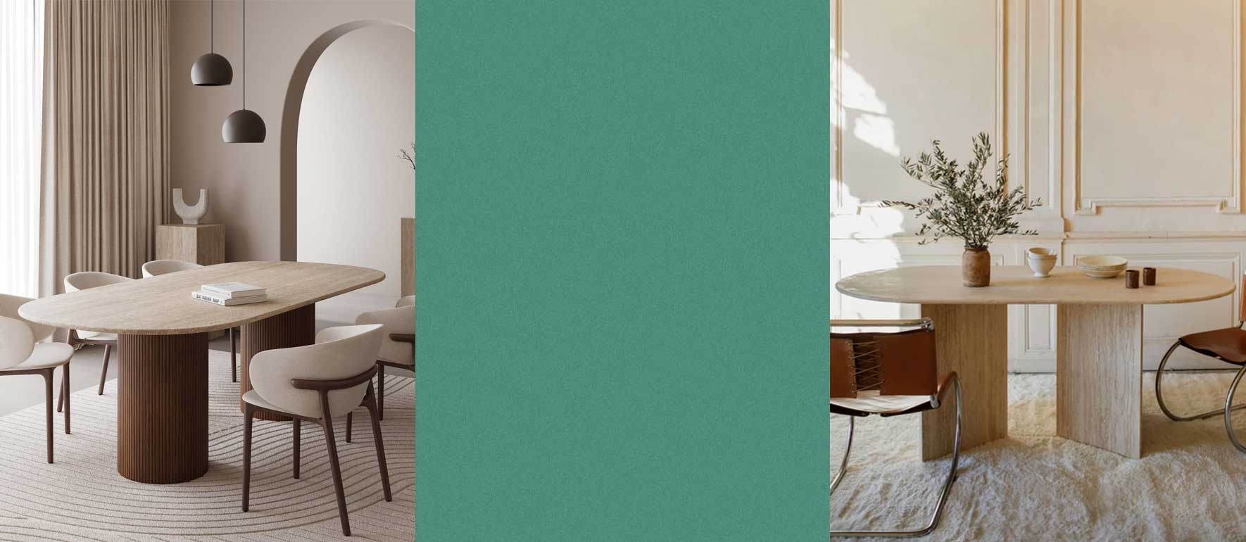 Neyda Traverten Yemek Masası - Köşe Yuvarlak Kesim, V Traverten Ayak