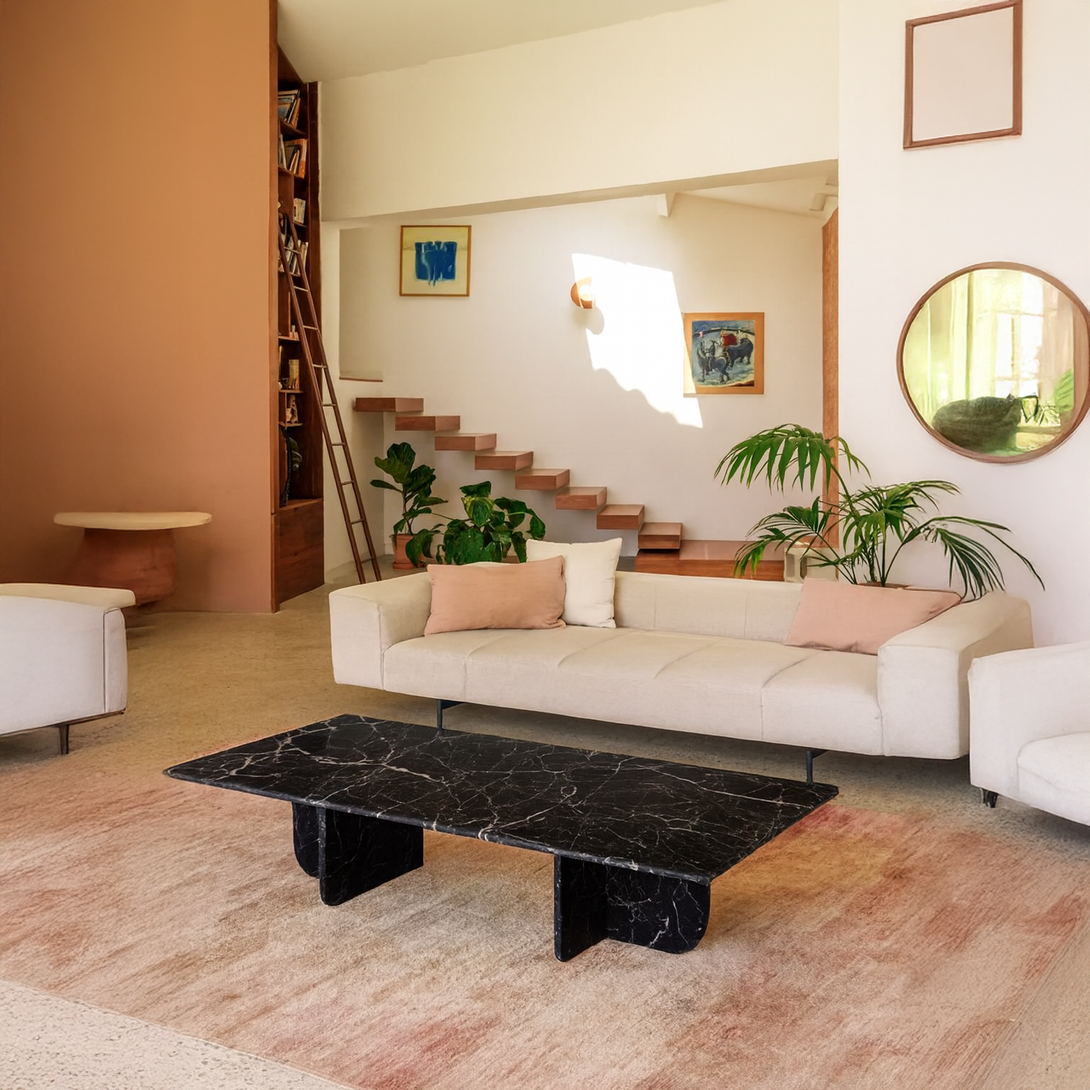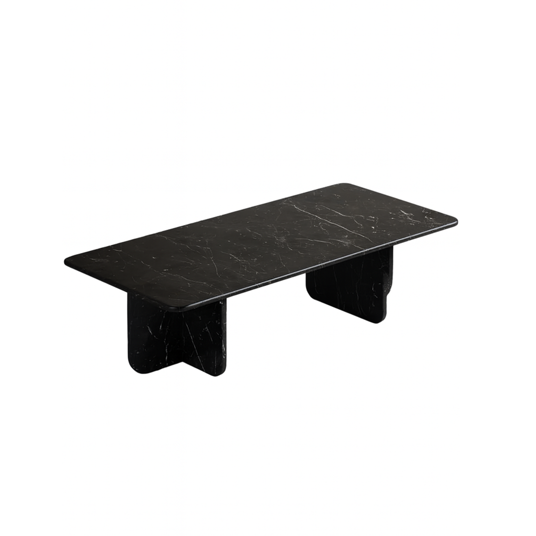 Alisa siyah mermer orta sehpa, yalın hatları ve güçlü formuyla çağdaş yaşam alanlarına doğal bir zarafet katıyor. Geniş ve dikdörtgen tablası, büyük oturma gruplarıyla mükemmel uyum sağlarken, mermerin benzersiz dokusu her parçayı tek ve özel kılıyor.