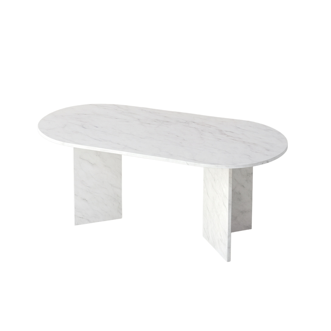 Neyda Beyaz Mermer Yemek Masası - Köşe Yuvarlak Kesim, V Mermer Ayak