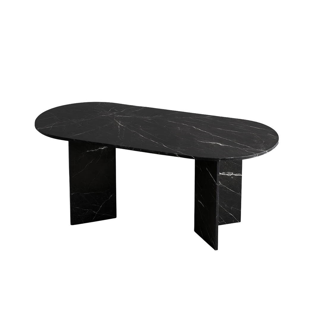 Neyda Siyah Mermer Yemek Masası - Köşe Yuvarlak Kesim, V Mermer Ayak