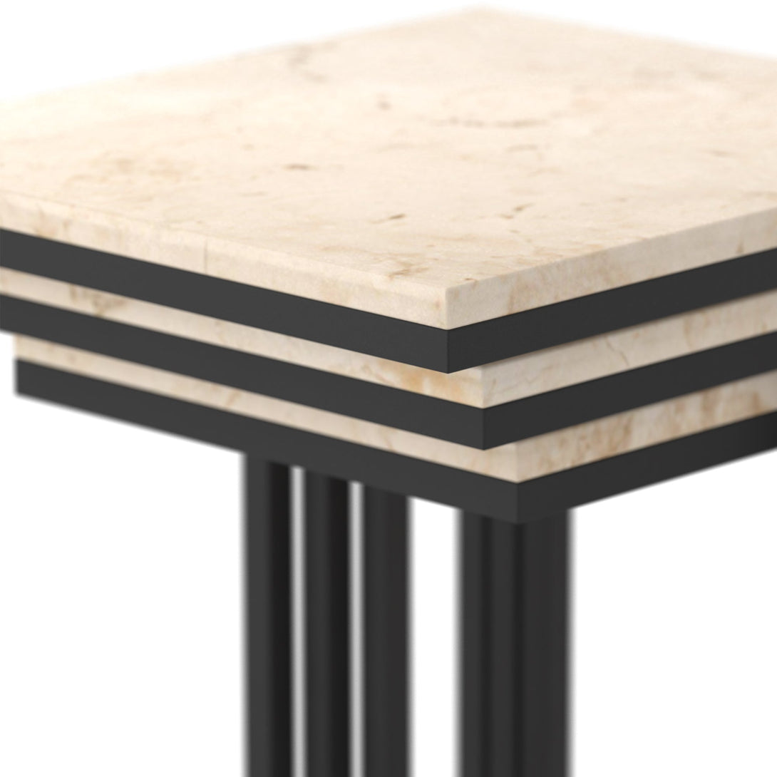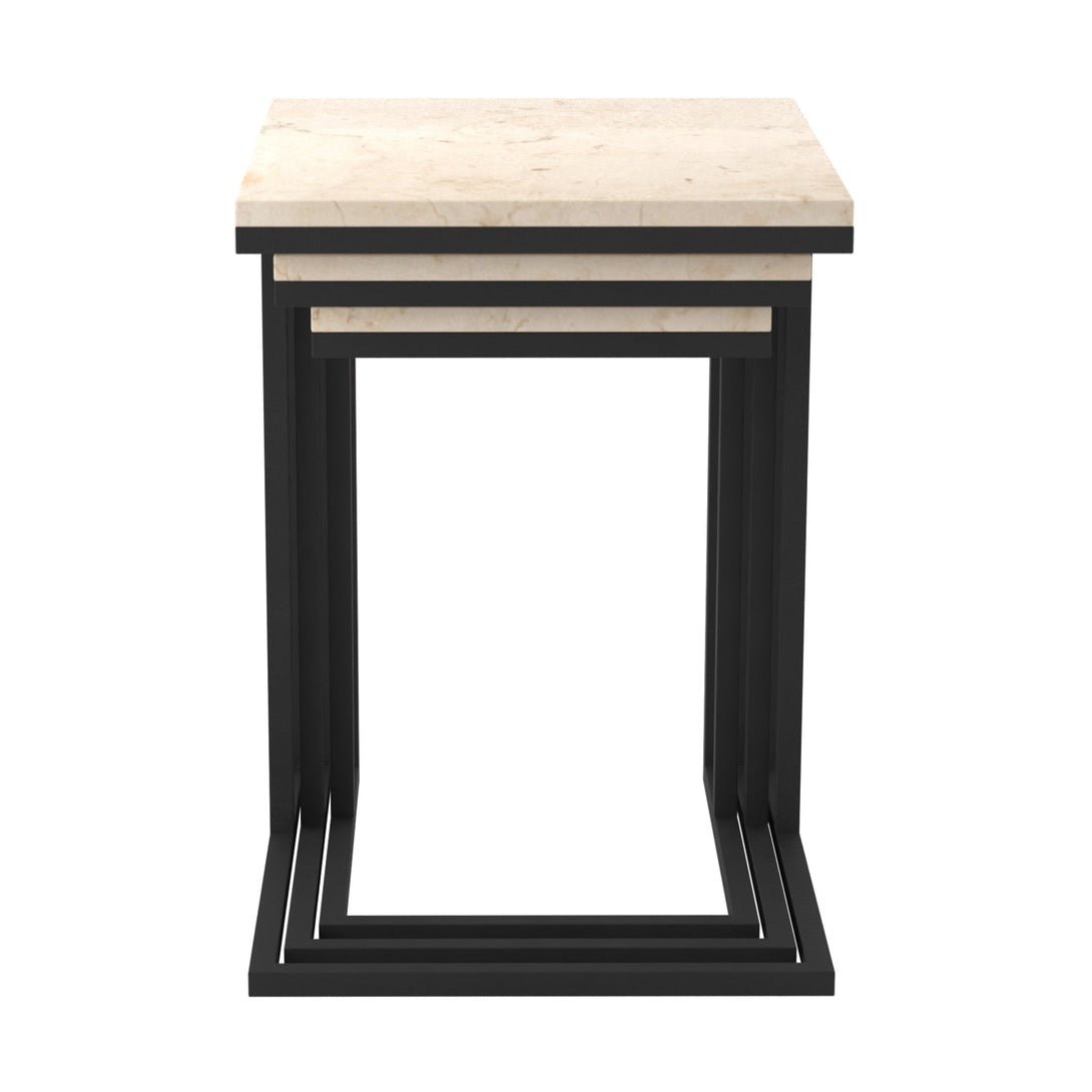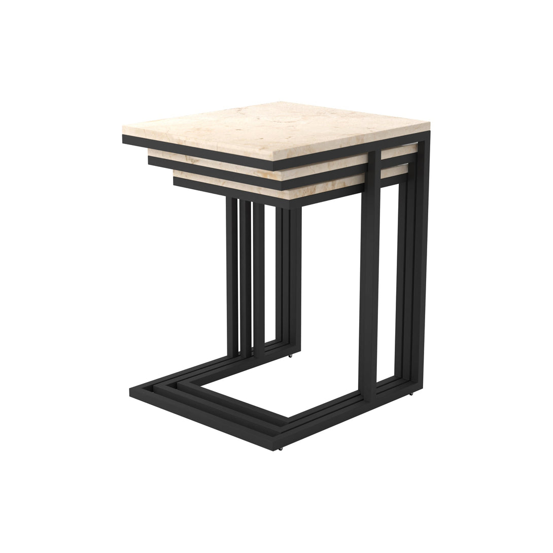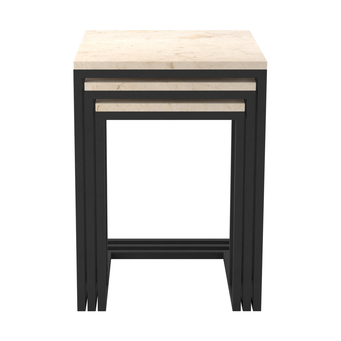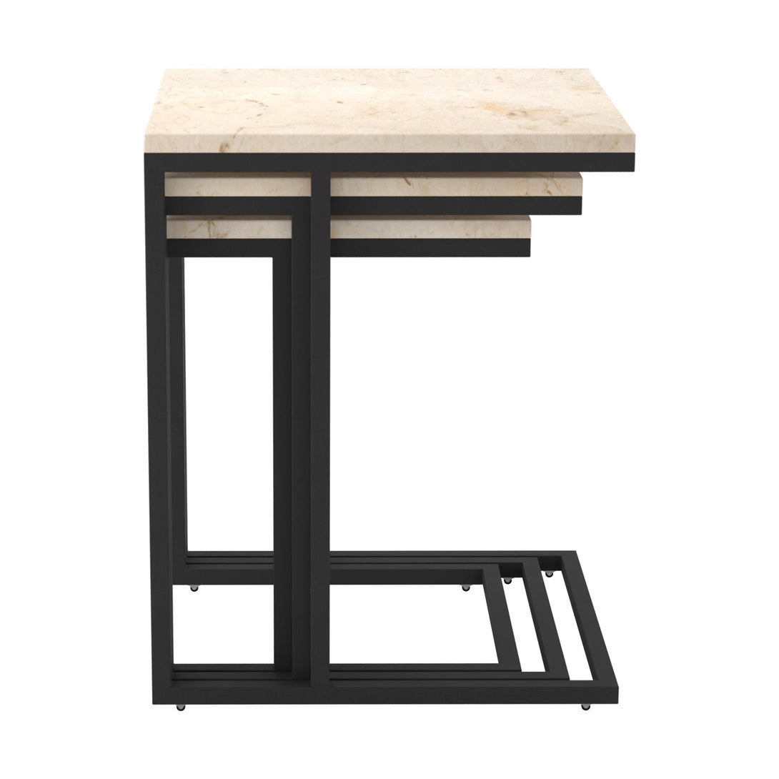 Nova Bej Mermer Tekerlekli Zigon Sehpa Takımı - Siyah Ayak