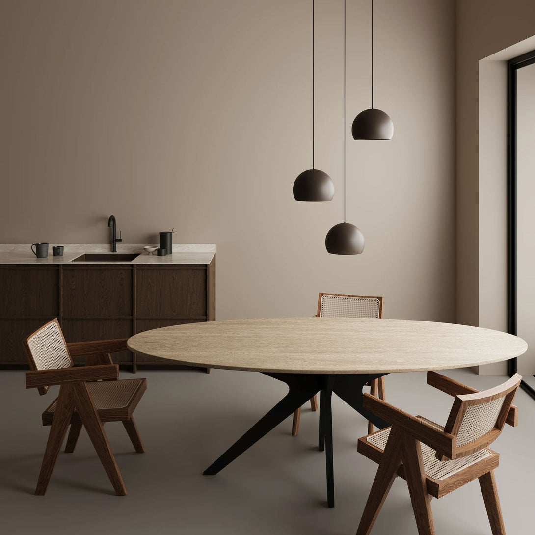 Vesa Traverten Yemek Masası - Oval Kesim, Kelebek Ayak